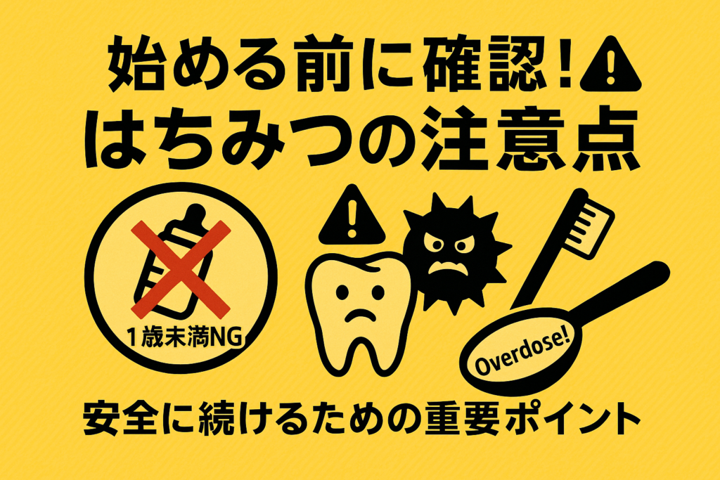 手軽に始められるはちみつによる睡眠改善ですが、安全に続けるためにはいくつかの重要なはちみつの注意点を理解しておく必要があります。
